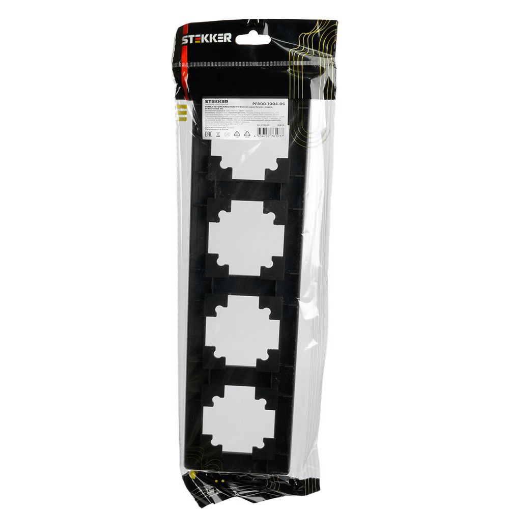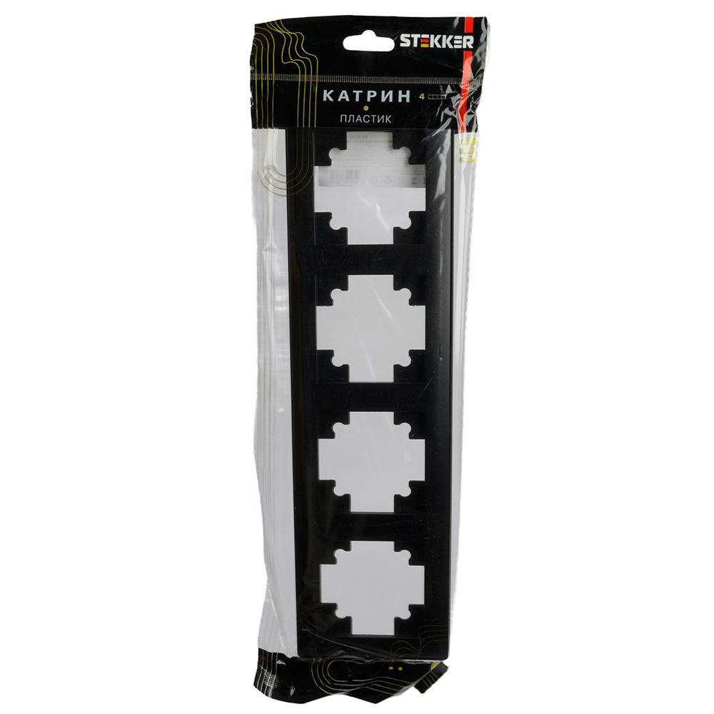 Рамка STEKKER, PFR00-7004-05 4-местная, пластик, серия Катрин, черный 39815